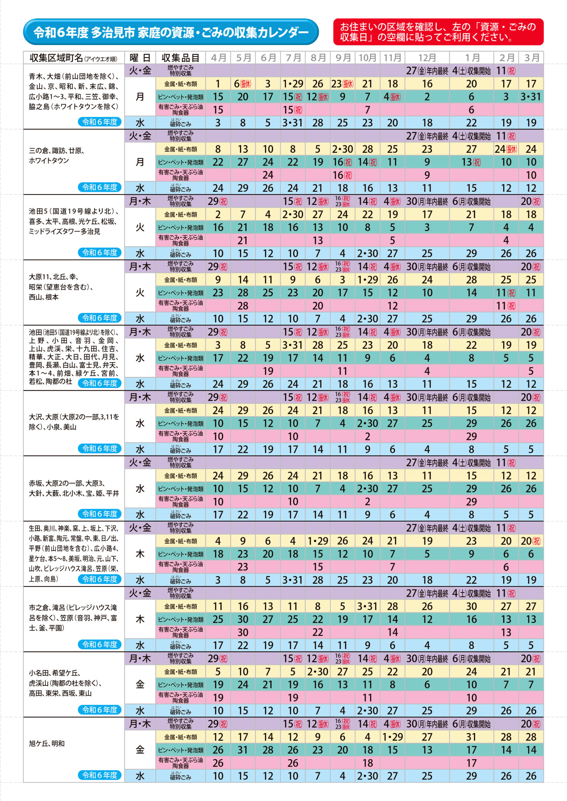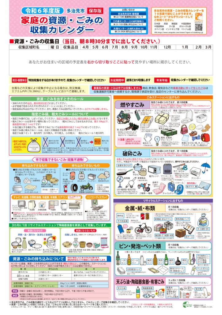 2024(令和6)年度 多治見市ごみ収集カレンダー(全地域)